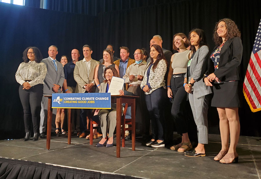 Labor standards in the bill will preserve and add good union jobs to decarbonize buildings at a scale that aligns with New York’s climate law and provides a transition pathway for gas pipeline workers to build shared geothermal energy projects. As a result of this law, the state’s seven largest gas utilities are now piloting thermal energy network projects in all regions of the state.